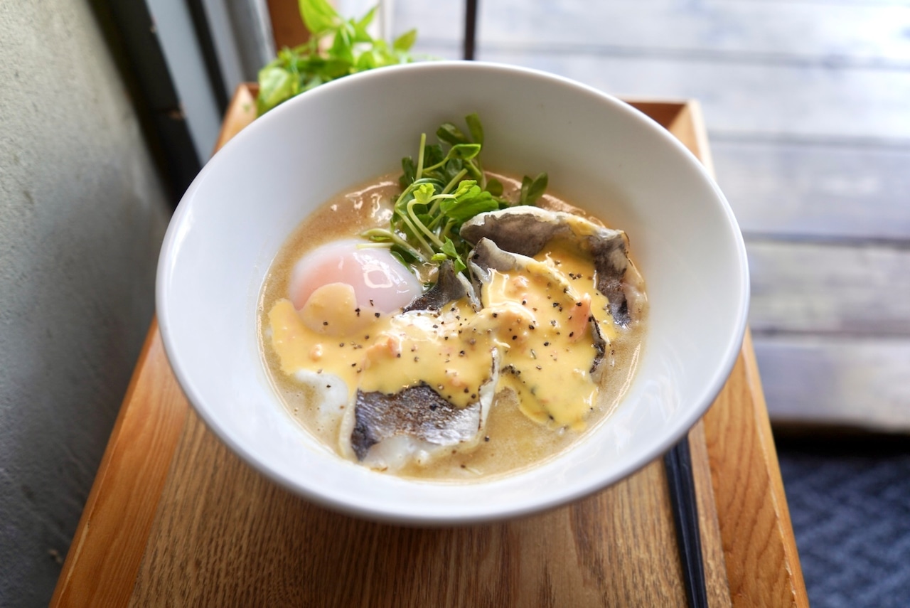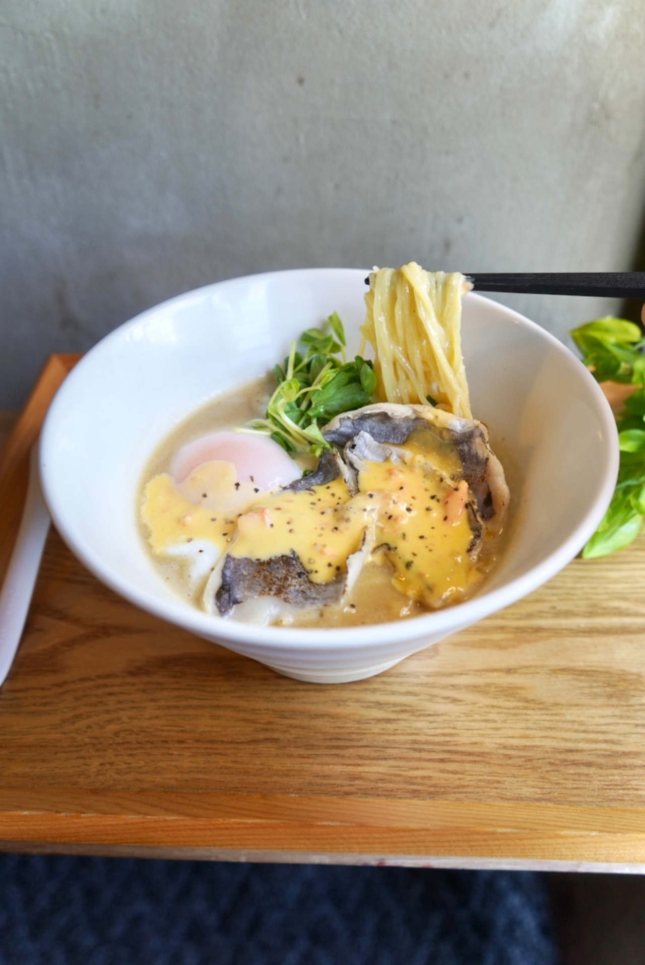 山梨県産『富士の介サーモン』を使用したこのラーメンは、国内唯一のキングサーモンの血を引く贅沢な一品。