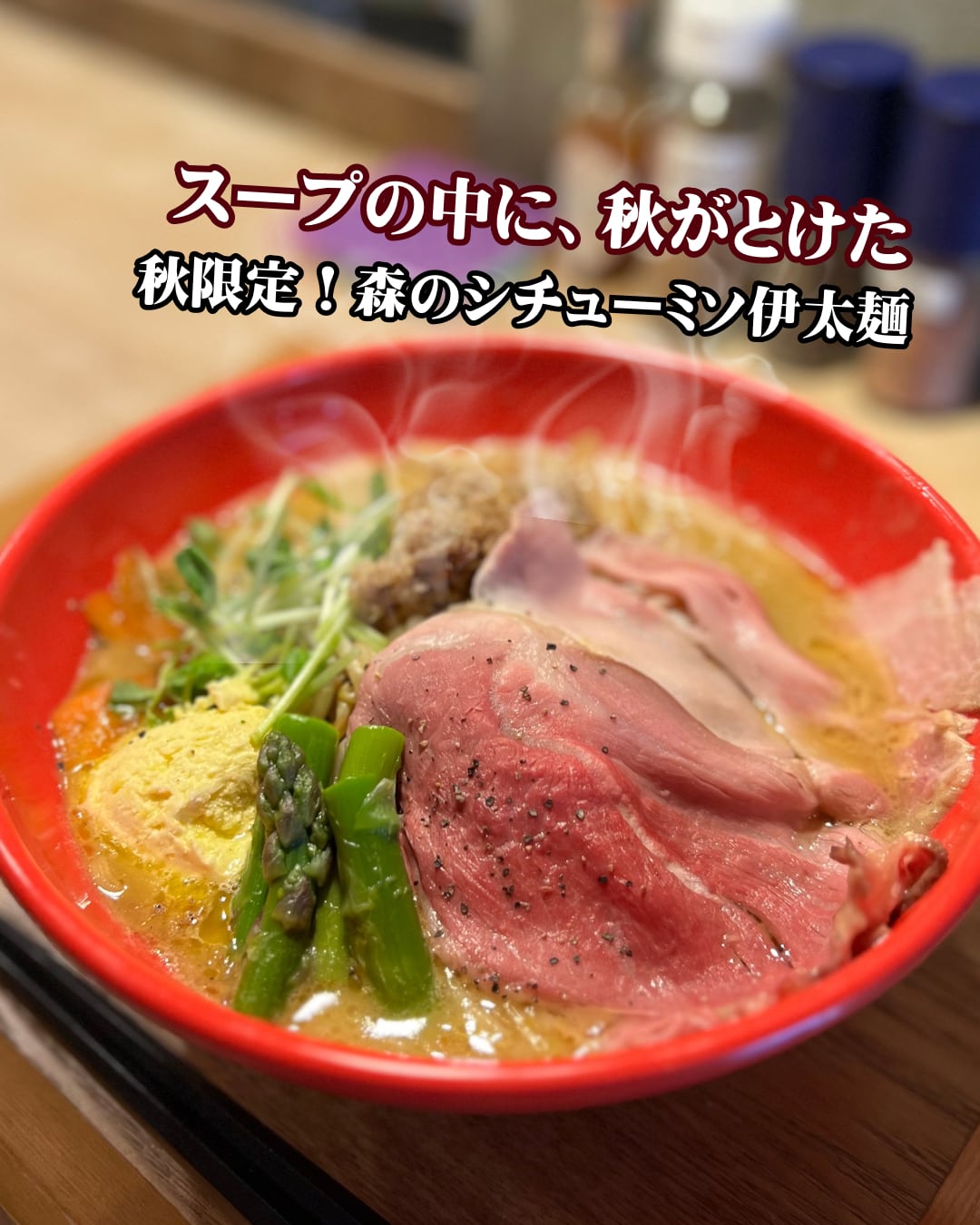 秋の森をイメージして仕上げた、伊太そばの季節限定“味噌×ビストロ”ラーメン。