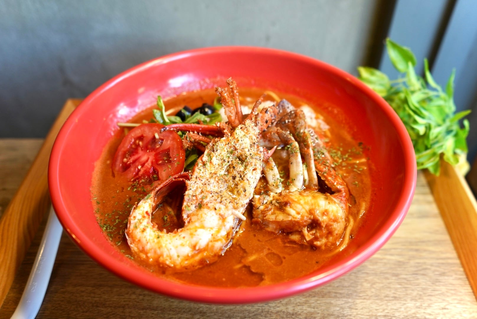 濃厚なトマトの旨みと豚骨の深いコクに、伊勢エビとカンジャンケジャンの旨みが重なり、ご家庭とは思えない贅沢な一杯に仕上がります。