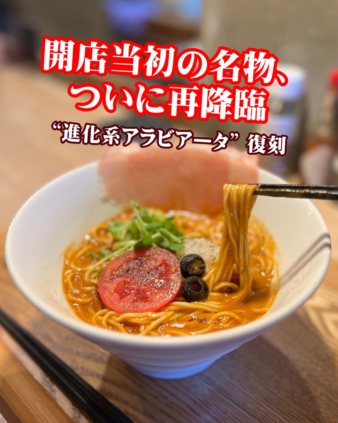開店当初のレギュラーメニューとして愛された「アラビアータ」が、スープの旨みをさらに進化させて復刻しました。