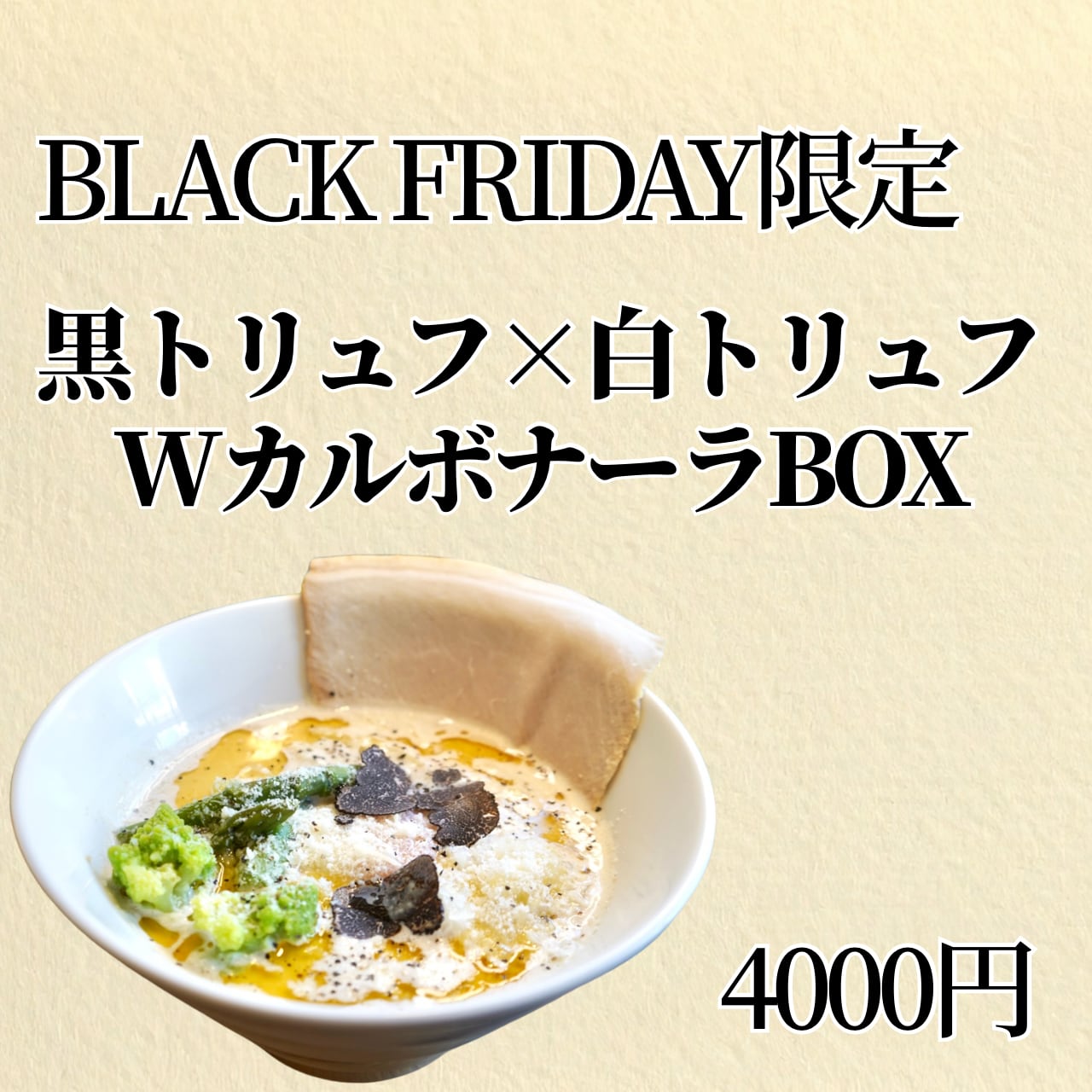 トリュフW使用の贅沢カルボナーラ、家で簡単に。ブラックフライデーだけの特別BOX